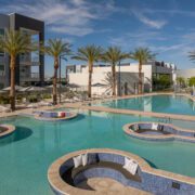 Travelers are also invited to unwind at the outdoor, private heated infinity pool and jacuzzi overlooking the lake, or venture inside to the connected indoor pool.